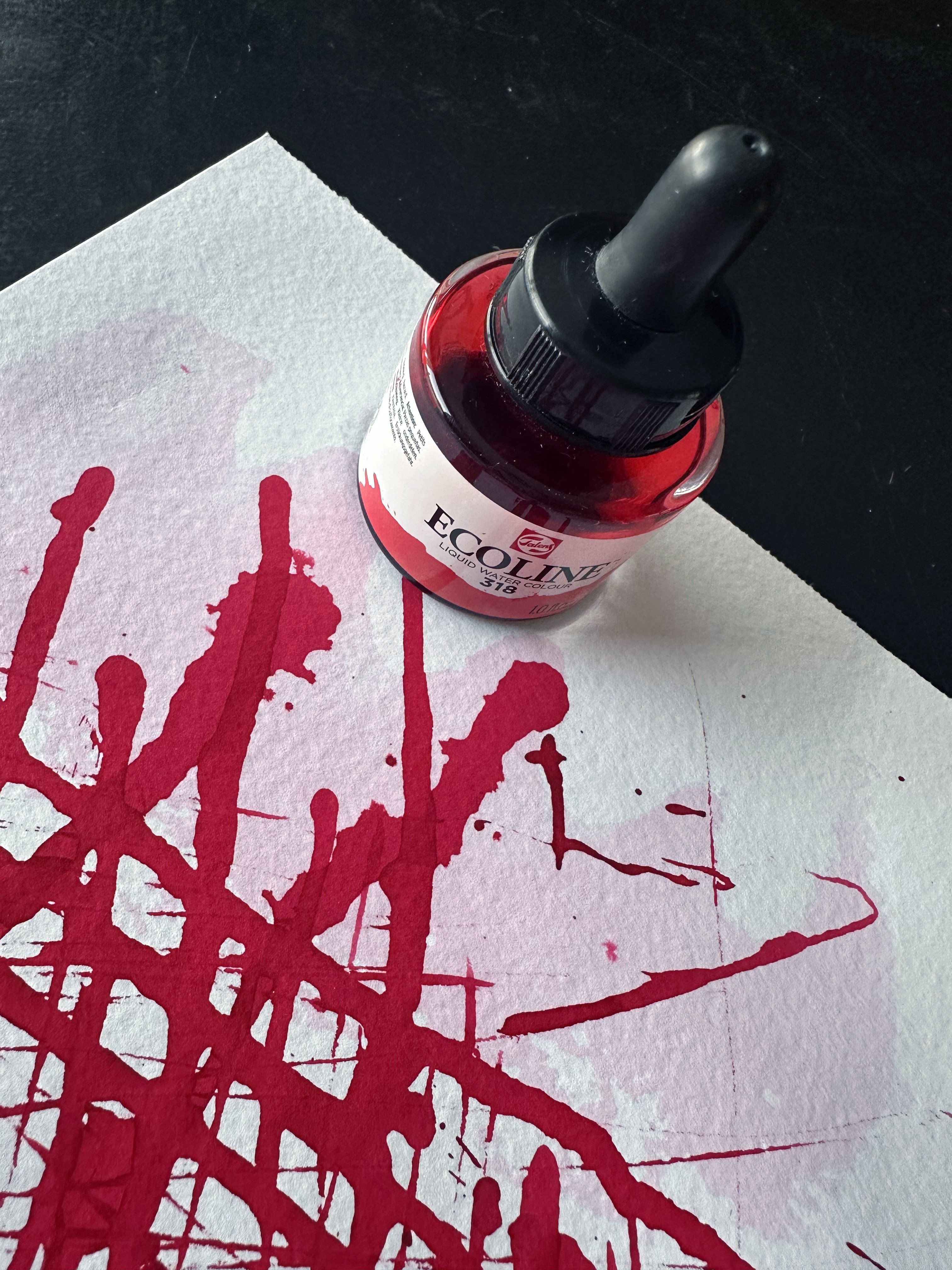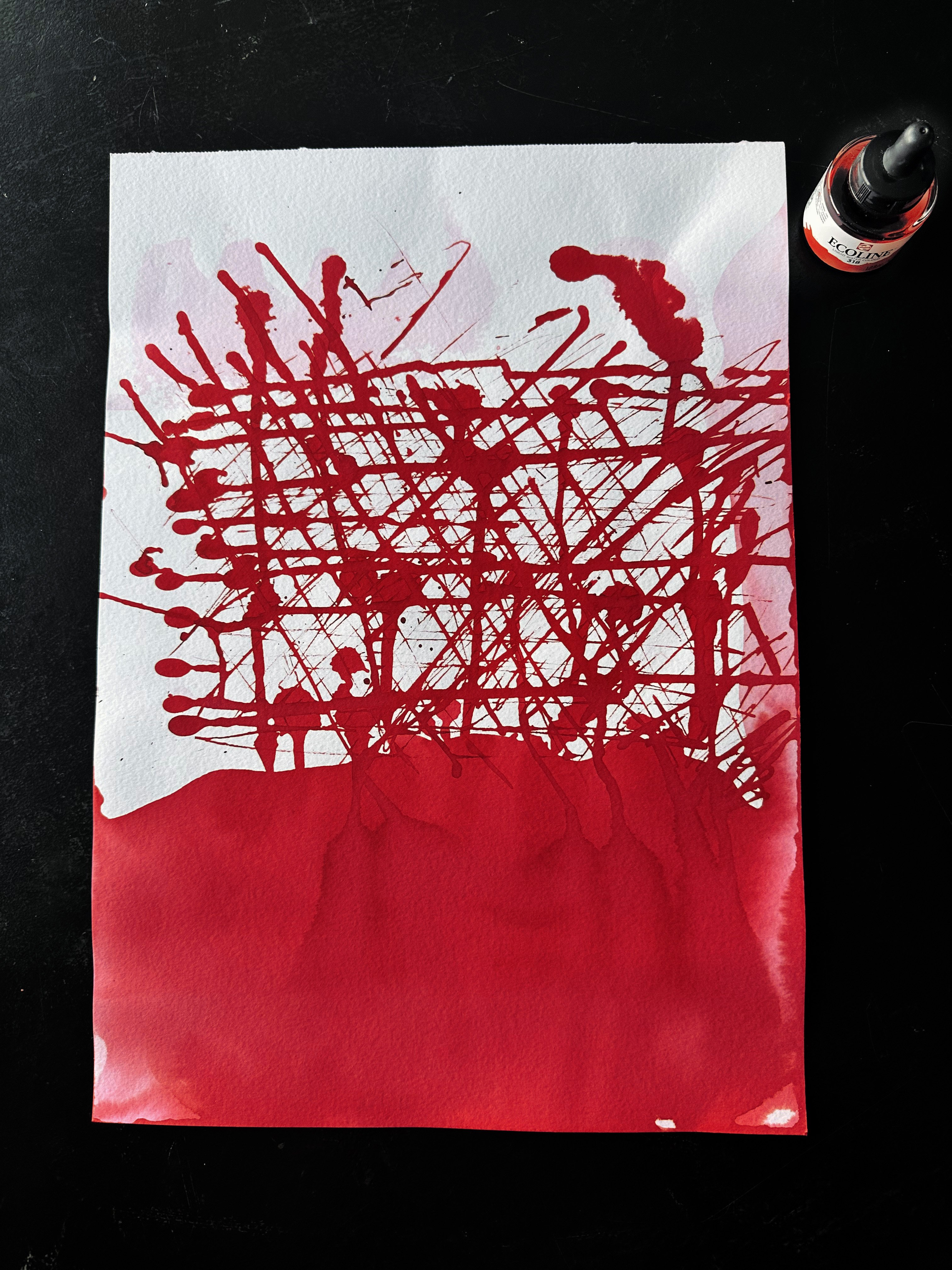 Vi arbejder ofte håndholdt, og derfor startede processen analogt med papir og maling. Vi lavede dryp, spor og lag, som senere blev omsat til et stramt, udstillingsklart udtryk. På den måde fik væggene en organisk energi i bunden, men stadig den disciplin og præcision, en museumsudstilling kræver.