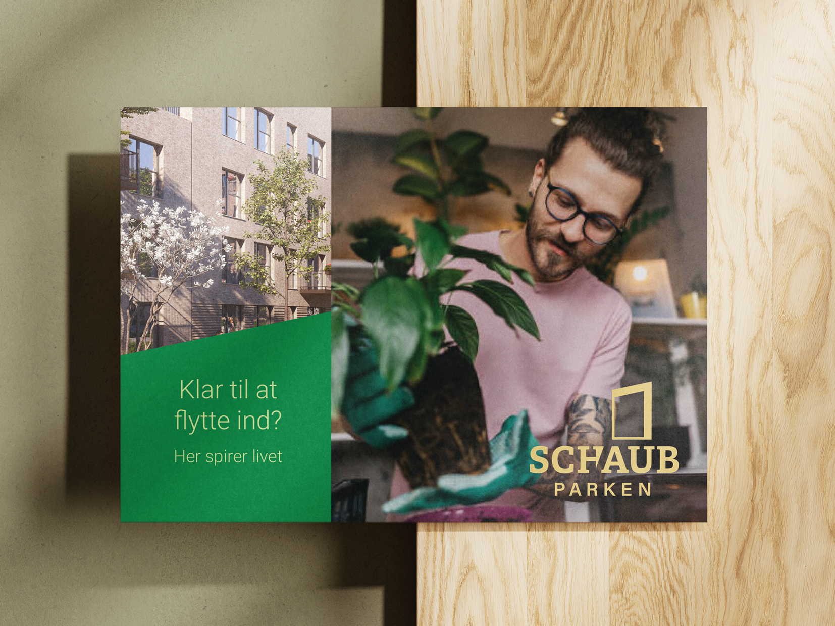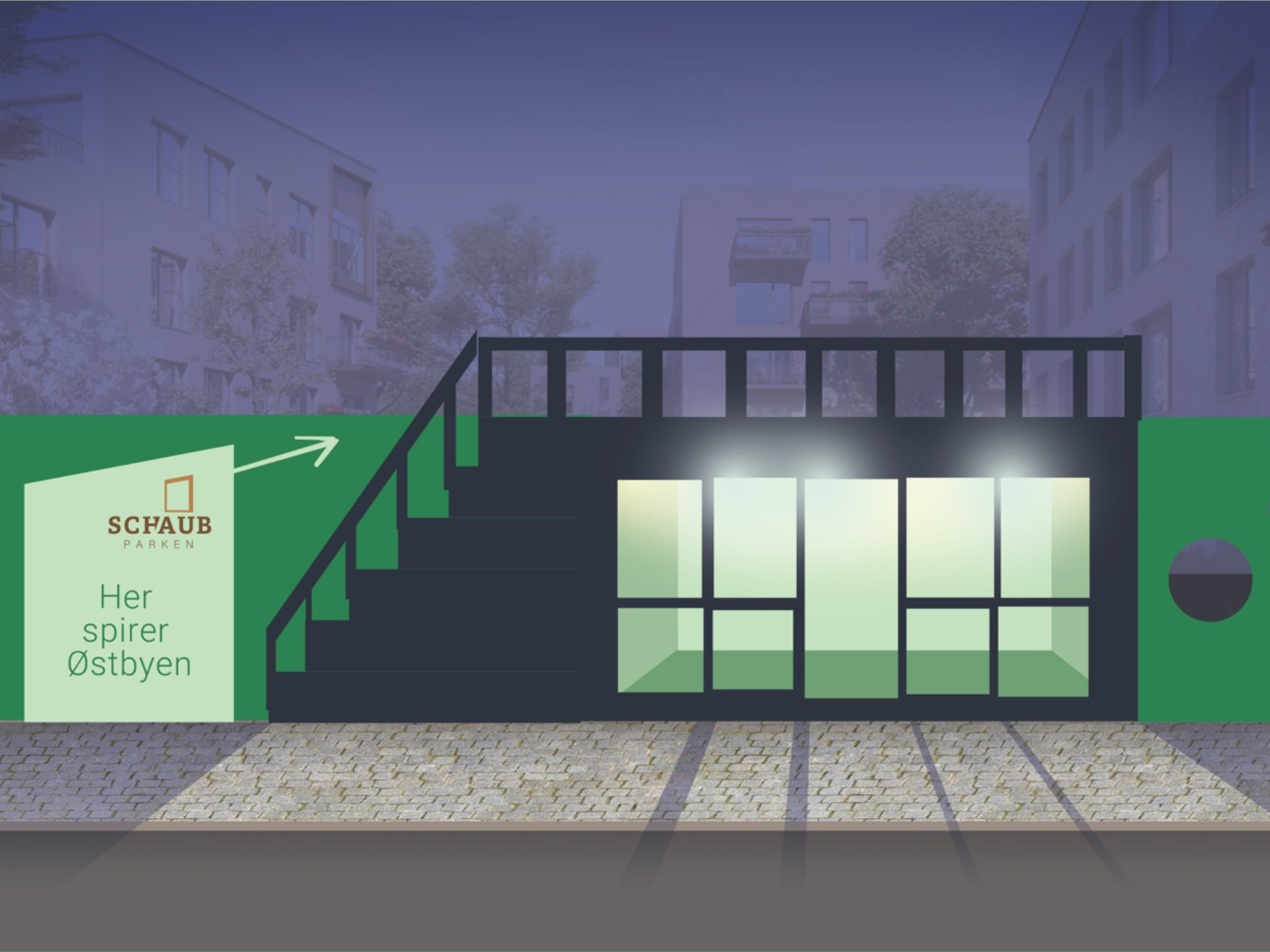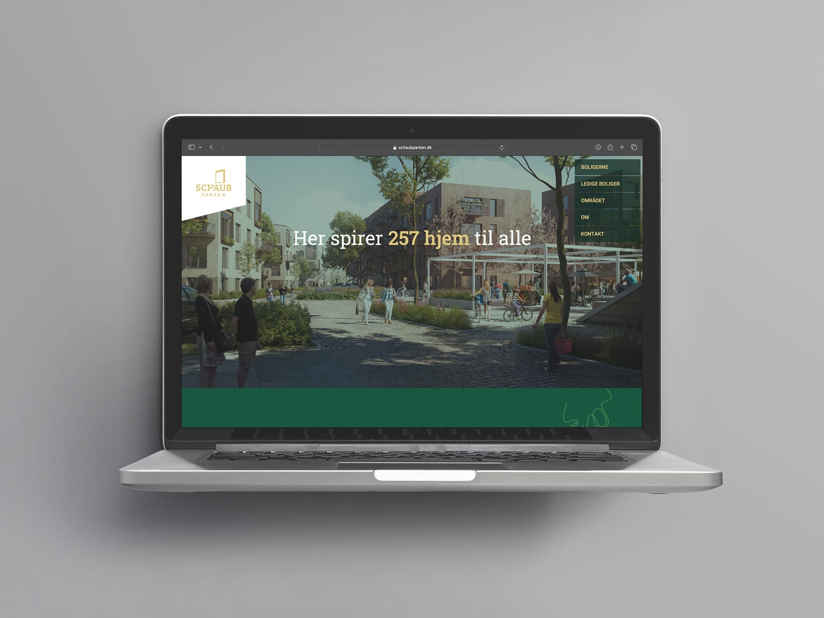 SchaubParken er et CO2-neutralt byudviklingsprojekt i Esbjerg, og vores opgave var at give projektet et visuelt udtryk, der både kunne signalere ambitionerne og fungere i praksis, hele vejen fra plan til virkelighed.